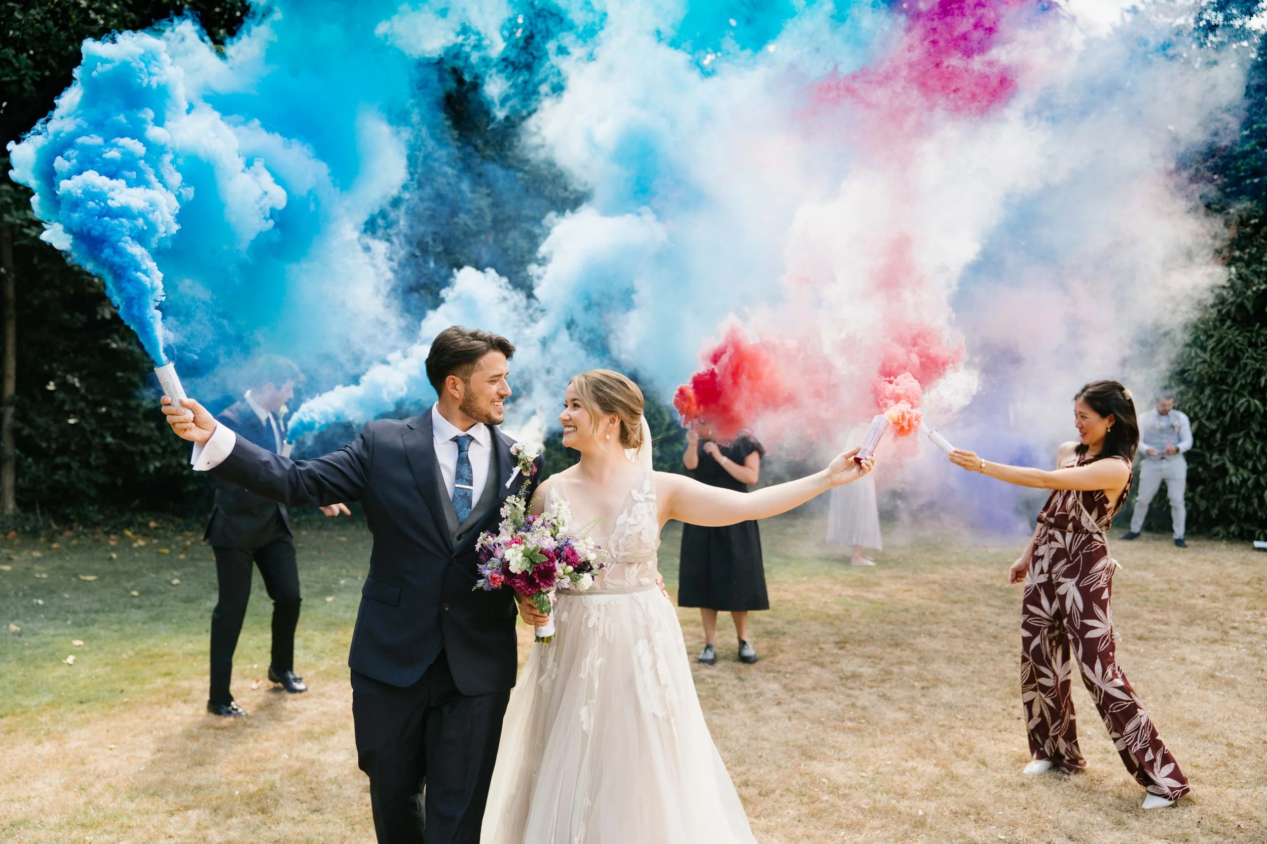 The reception was at the very cute Bar 163 in Egham, which has a lovely wee back garden and a really nice upstairs room for intimate wedding parties and wedding breakfasts. Sarah and George were total sports when it came to doing wedding couple portrait sessions, and to top it all, had brought along sparklers! Here I cheated on the solo shooter bit by handing one of my cameras to a bridesmaid to film it while I photographed it. Necessity being the mother of invention and all that.